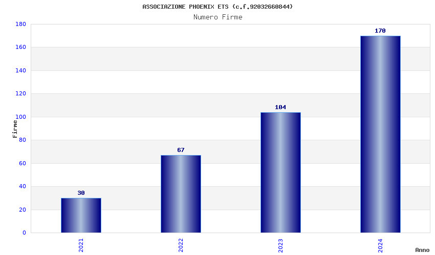 | Anno | Firme | Importi | Media | Naz. | Reg. | Prov. | Comu. |