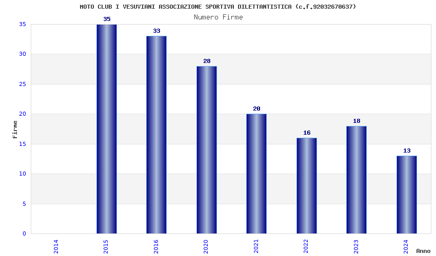 | Anno | Firme | Importi | Media | Naz. | Reg. | Prov. | Comu. |