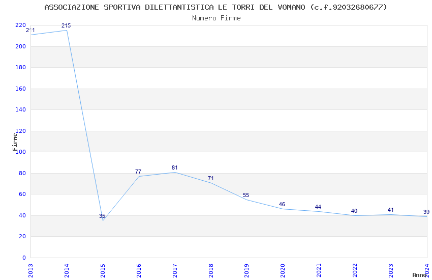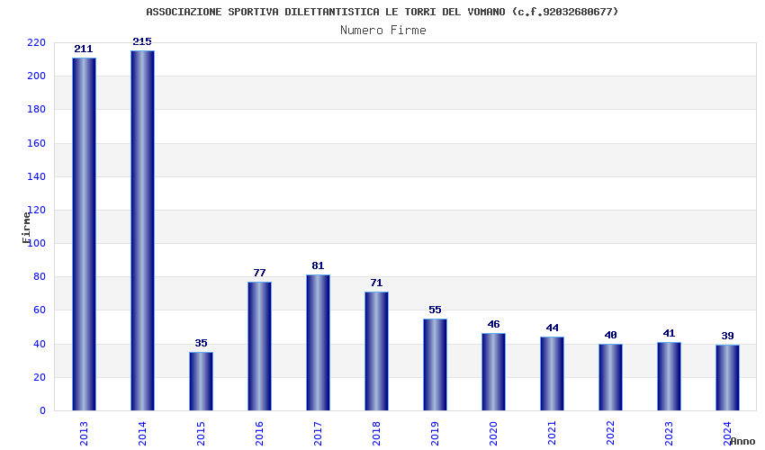 | 2013 | 211 | 3.389,82 | 16,07 | 12.396 | 199 | 50 | 2 |