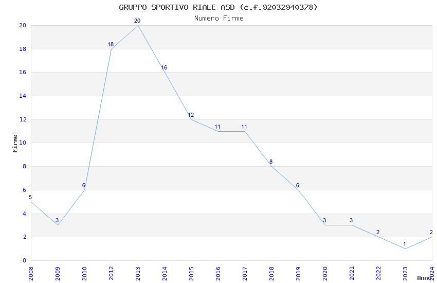 | 2013 | 20 | 553,26 | 27,66 | 33.748 | 3.062 | 706 | 8 |