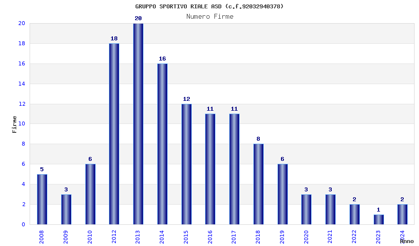 | Anno | Firme | Importi | Media | Naz. | Reg. | Prov. | Comu. |