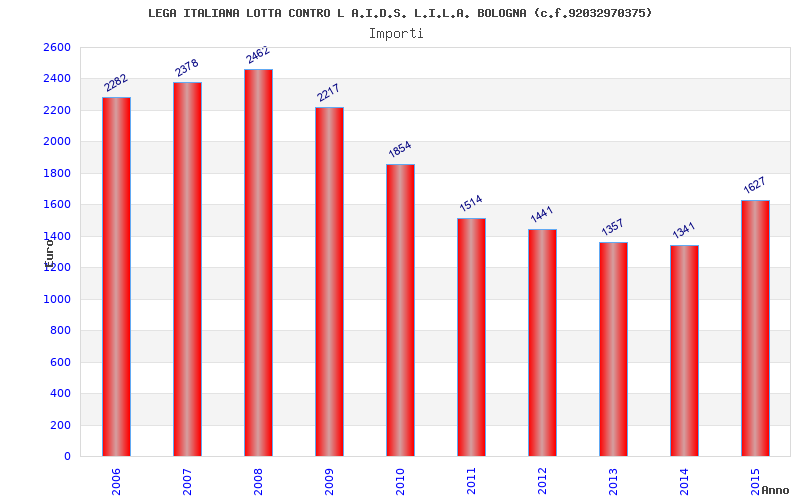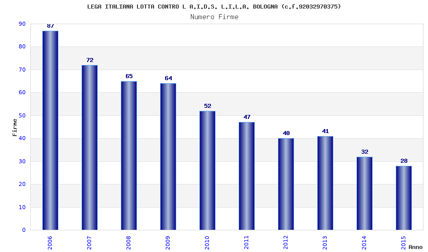 | Anno | Firme | Importi | Media | Naz. | Reg. | Prov. | Comu. |
