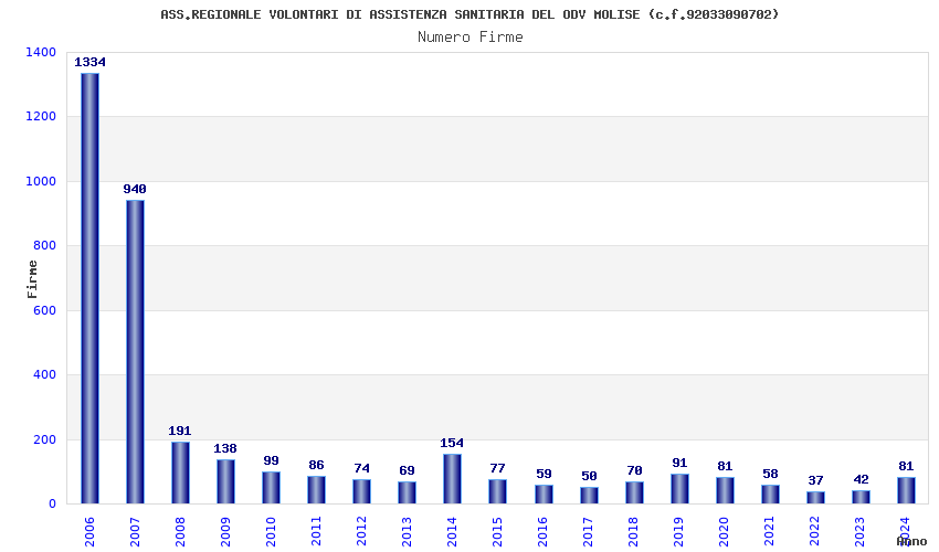 | Anno | Firme | Importi | Media | Naz. | Reg. | Prov. | Comu. |