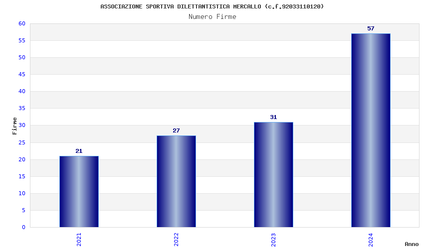 | Anno | Firme | Importi | Media | Naz. | Reg. | Prov. | Comu. |