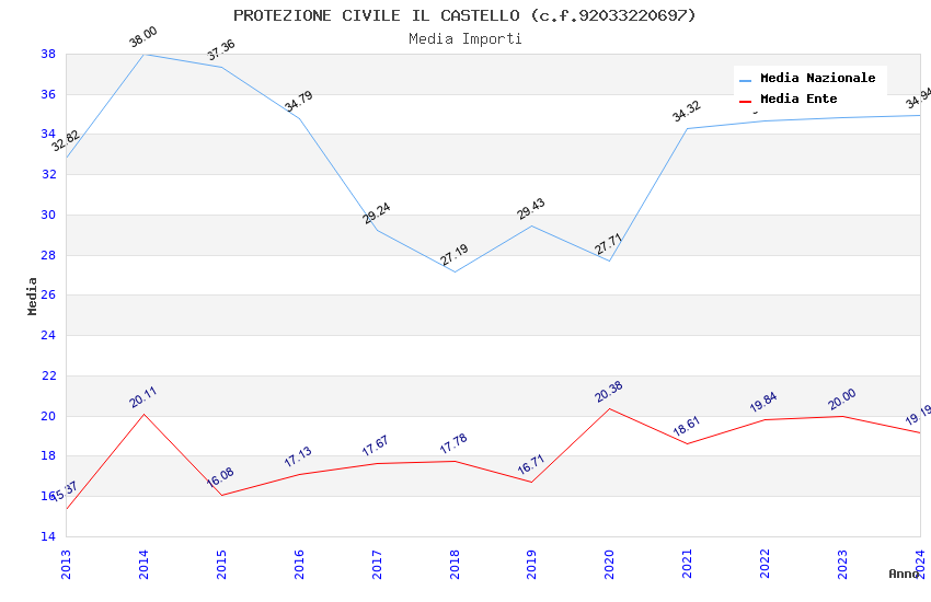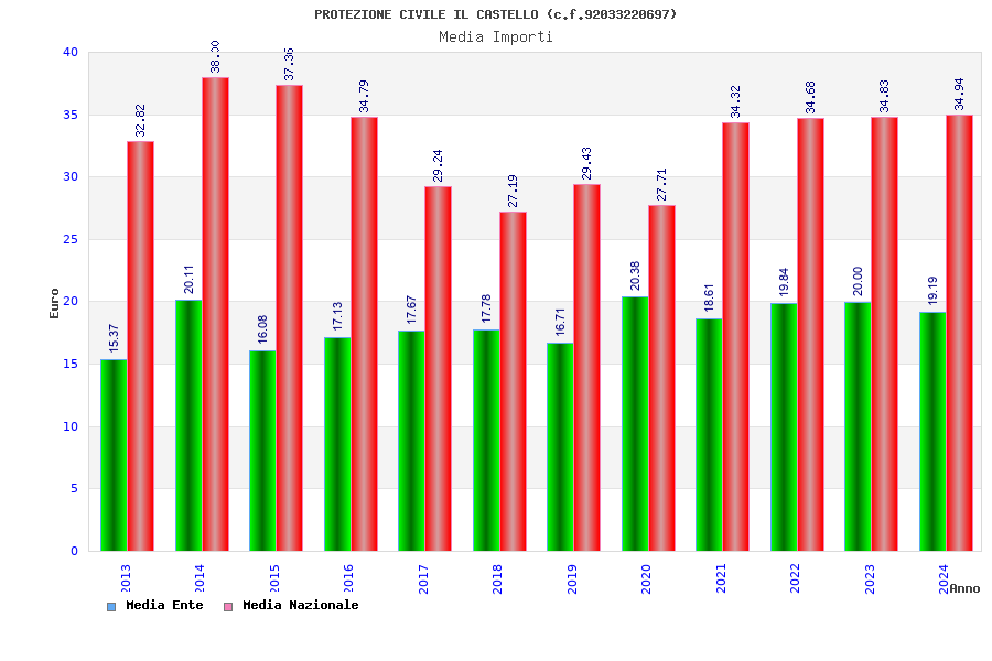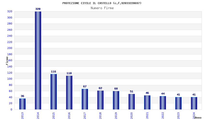 | Anno | Firme | Importi | Media | Naz. | Reg. | Prov. | Comu. |