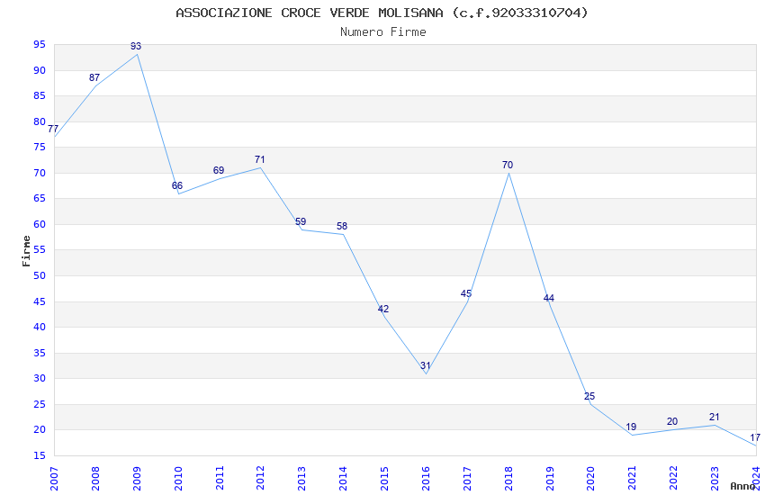 | 2018 | 70 | 2.087,61 | 29,82 | 22.983 | 84 | 59 | 29 |