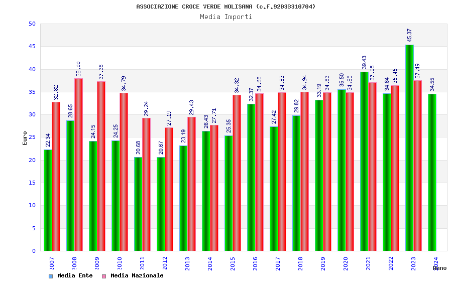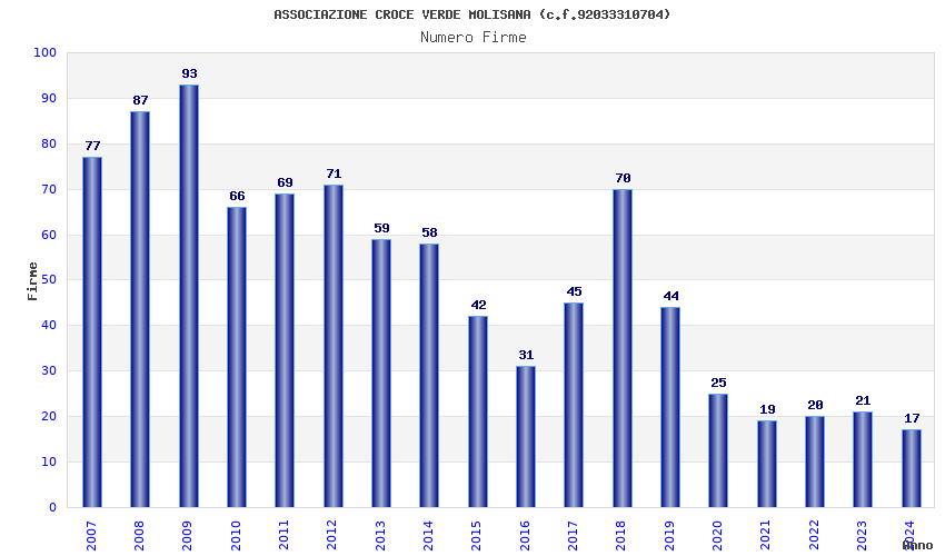 | Anno | Firme | Importi | Media | Naz. | Reg. | Prov. | Comu. |