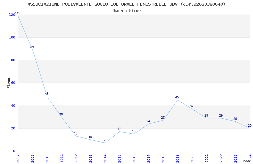 | 2019 | 45 | 1.481,59 | 32,92 | 29.007 | 1.585 | 149 | 3 |