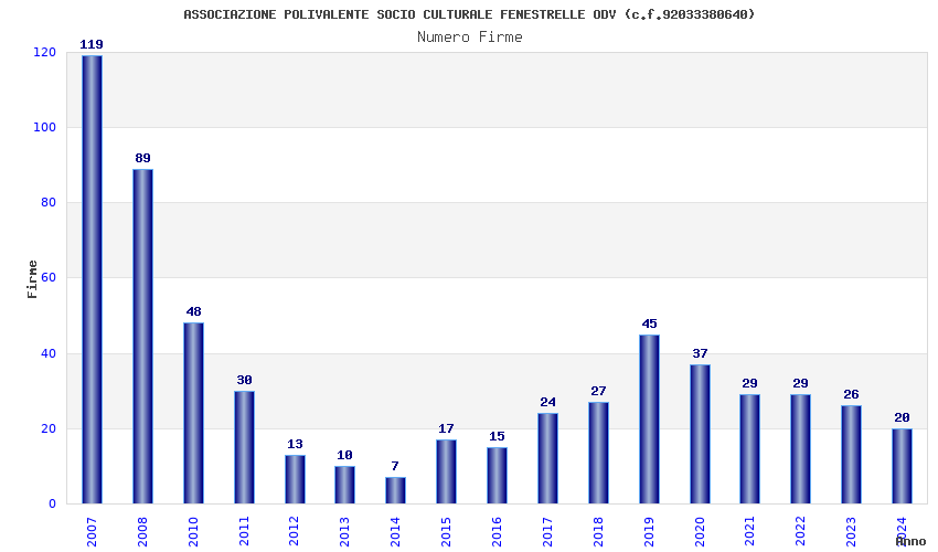 | Anno | Firme | Importi | Media | Naz. | Reg. | Prov. | Comu. |
