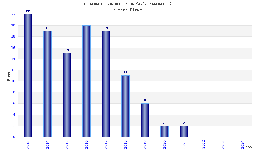 | Anno | Firme | Importi | Media | Naz. | Reg. | Prov. | Comu. |