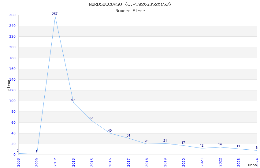 | 2012 | 257 | 3.872,44 | 15,07 | 10.999 | 2.519 | 1.001 | 15 |