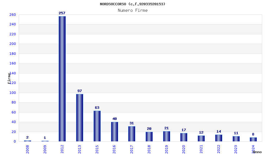 | Anno | Firme | Importi | Media | Naz. | Reg. | Prov. | Comu. |