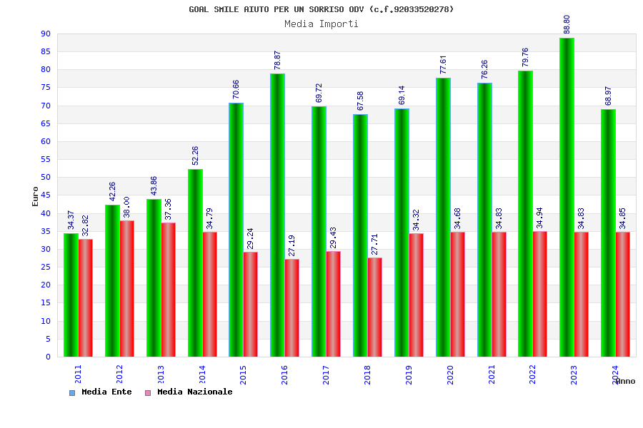 | Anno | Firme | Importi | Media | Naz. | Reg. | Prov. | Comu. |