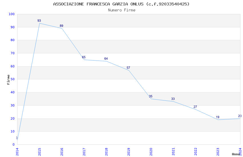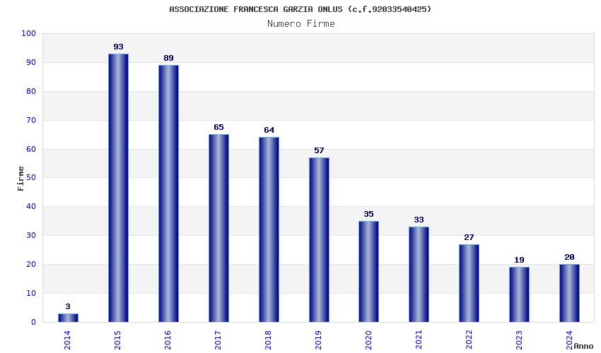| Anno | Firme | Importi | Media | Naz. | Reg. | Prov. | Comu. |