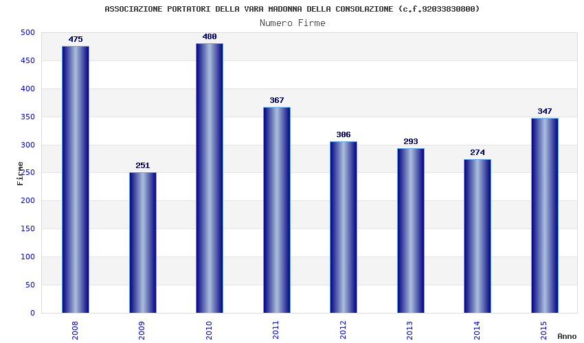 | Anno | Firme | Importi | Media | Naz. | Reg. | Prov. | Comu. |