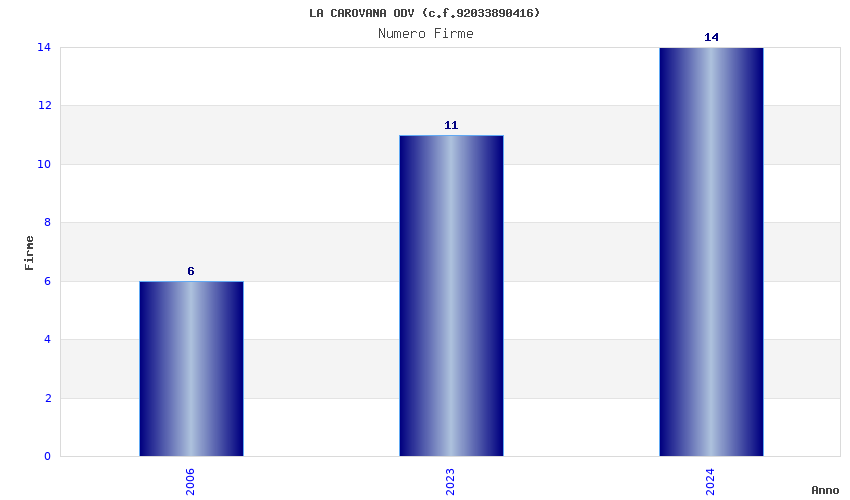 | Anno | Firme | Importi | Media | Naz. | Reg. | Prov. | Comu. |