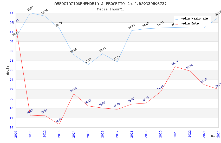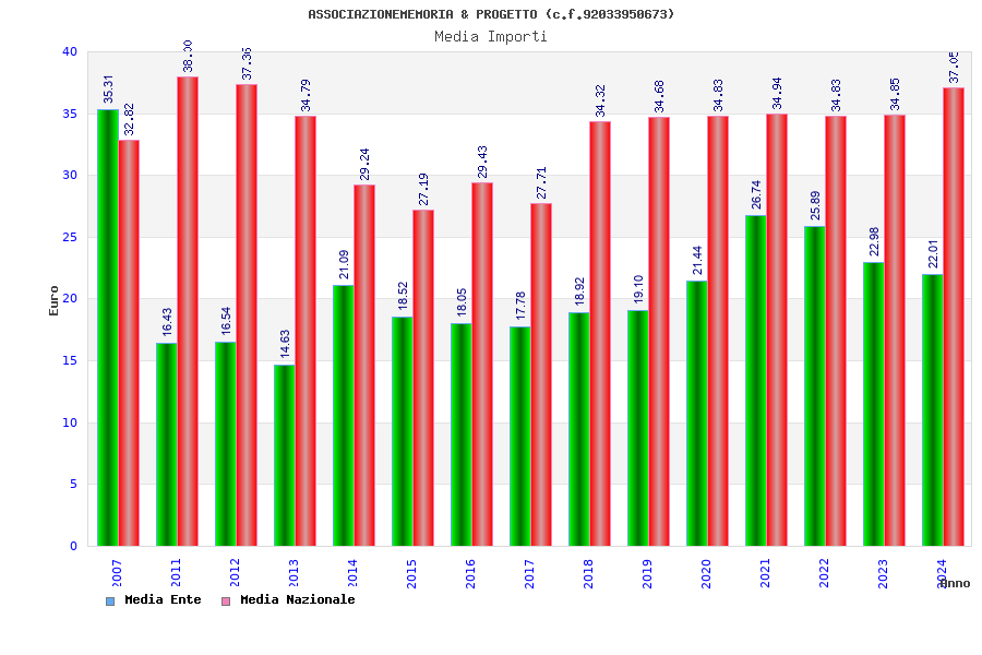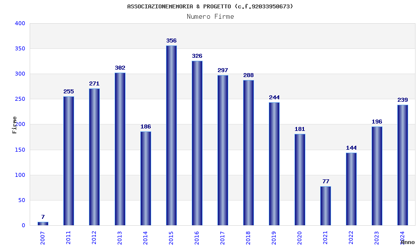 | Anno | Firme | Importi | Media | Naz. | Reg. | Prov. | Comu. |