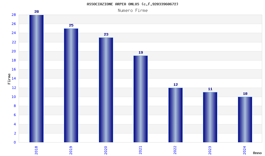 | Anno | Firme | Importi | Media | Naz. | Reg. | Prov. | Comu. |