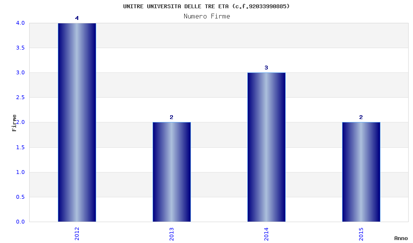 | Anno | Firme | Importi | Media | Naz. | Reg. | Prov. | Comu. |