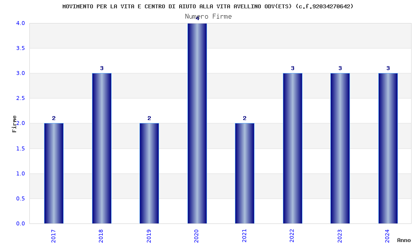 | Anno | Firme | Importi | Media | Naz. | Reg. | Prov. | Comu. |
