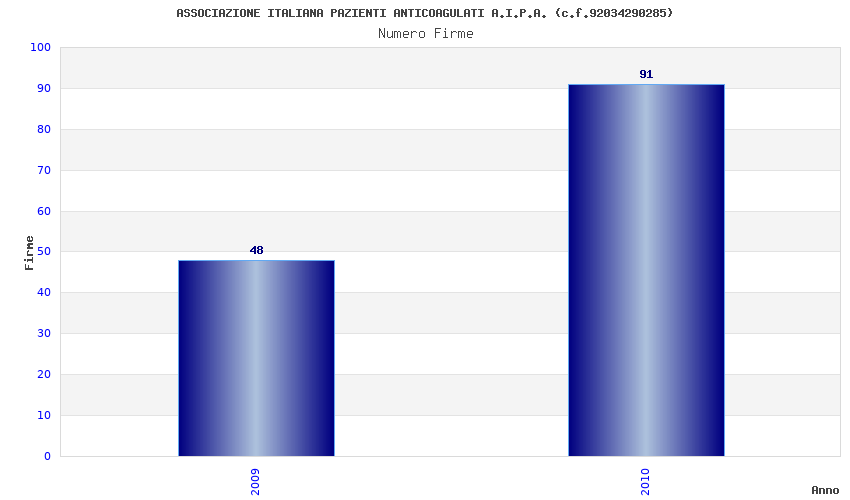 | Anno | Firme | Importi | Media | Naz. | Reg. | Prov. | Comu. |