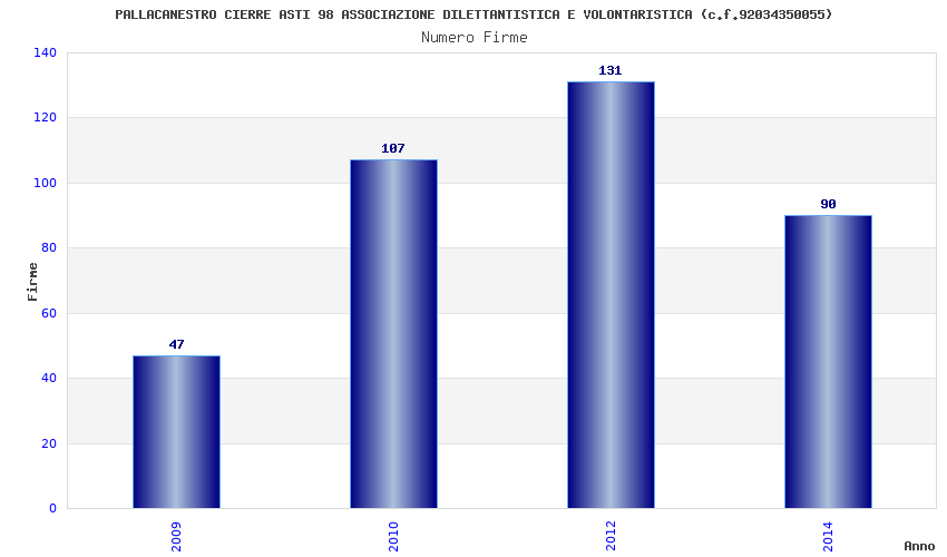 | Anno | Firme | Importi | Media | Naz. | Reg. | Prov. | Comu. |