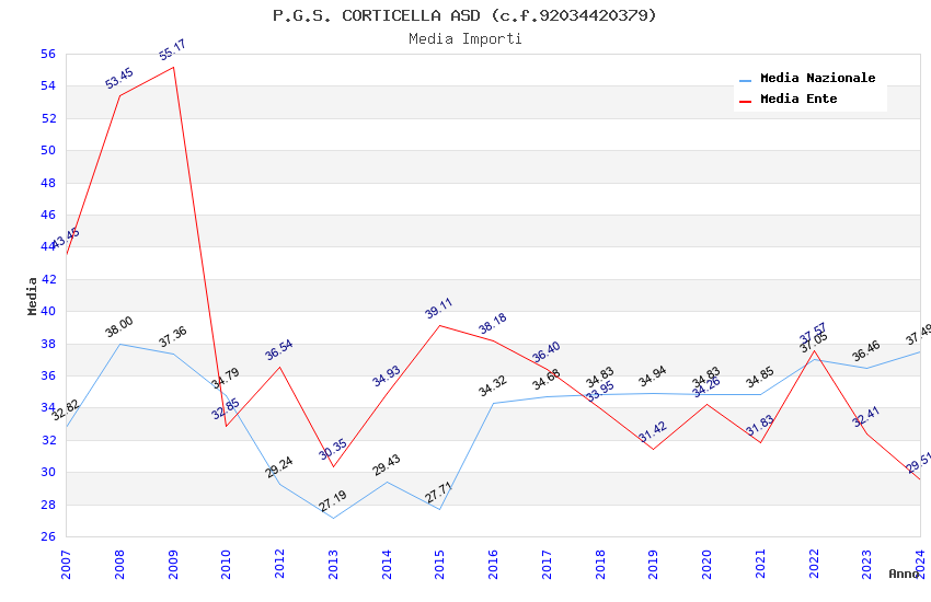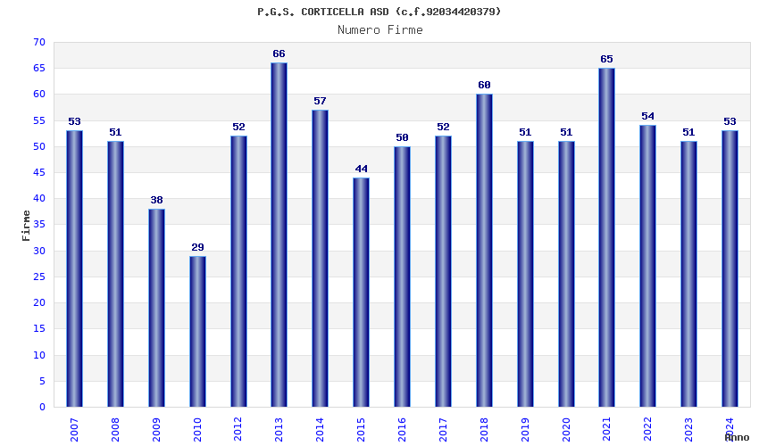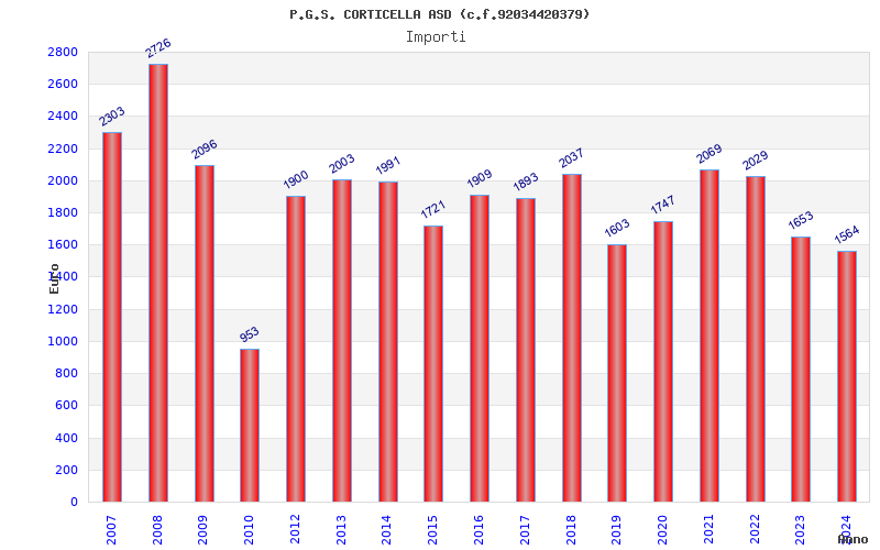 | Anno | Firme | Importi | Media | Naz. | Reg. | Prov. | Comu. |