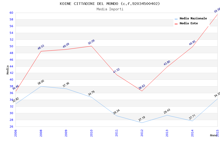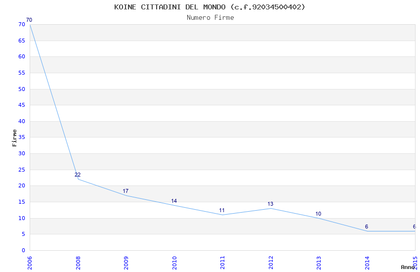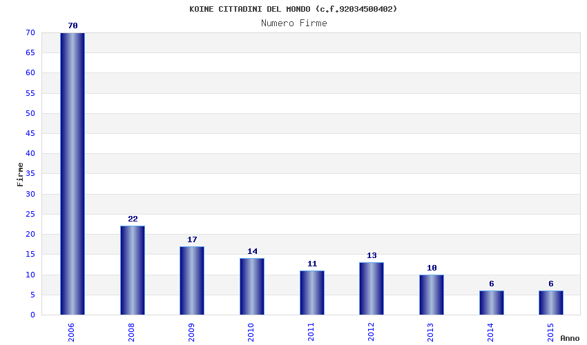 | Anno | Firme | Importi | Media | Naz. | Reg. | Prov. | Comu. |