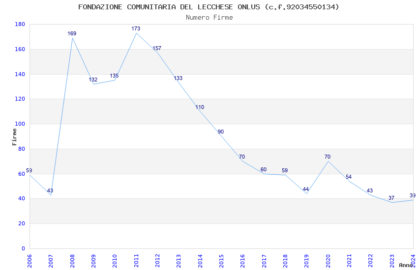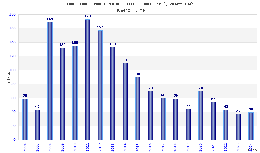 | Anno | Firme | Importi | Media | Naz. | Reg. | Prov. | Comu. |