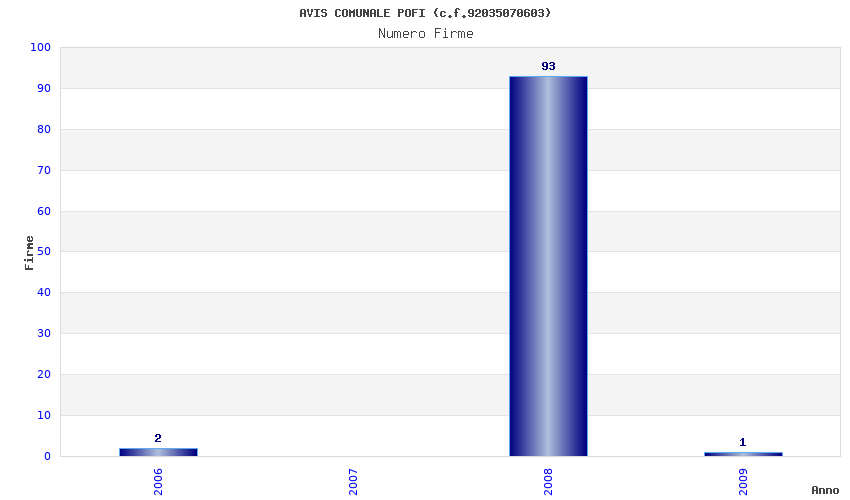 | Anno | Firme | Importi | Media | Naz. | Reg. | Prov. | Comu. |