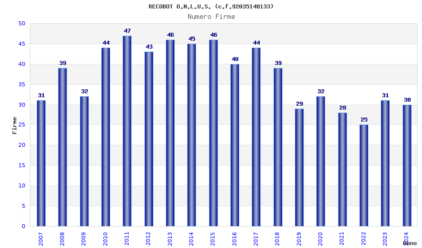 Anno Firme Importi Media Naz. Reg. Prov. Comu.