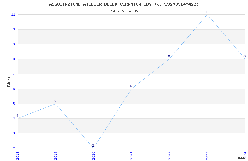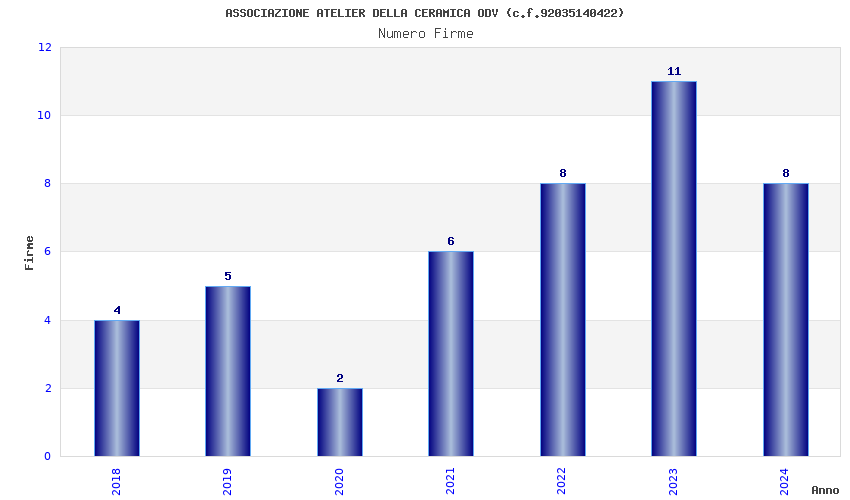 | Anno | Firme | Importi | Media | Naz. | Reg. | Prov. | Comu. |