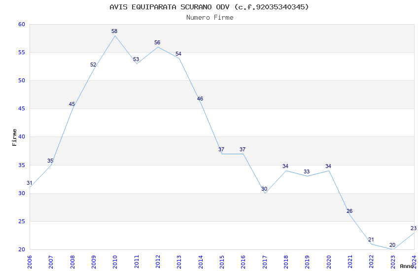 | Anno | Firme | Importi | Media | Naz. | Reg. | Prov. | Comu. |