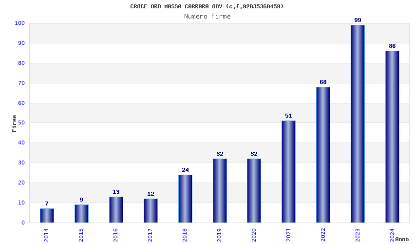 | 2024 | 86 | 2.318,11 | 26,95 | 21.465 | 1.290 | 51 | 17 |