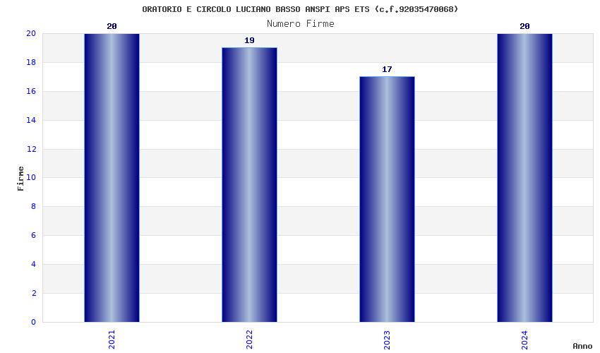 | Anno | Firme | Importi | Media | Naz. | Reg. | Prov. | Comu. |