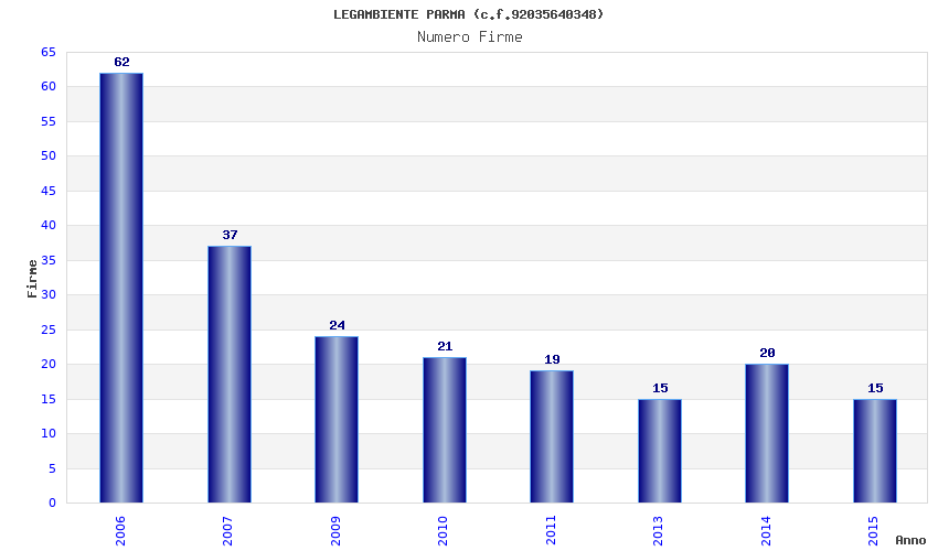 | Anno | Firme | Importi | Media | Naz. | Reg. | Prov. | Comu. |