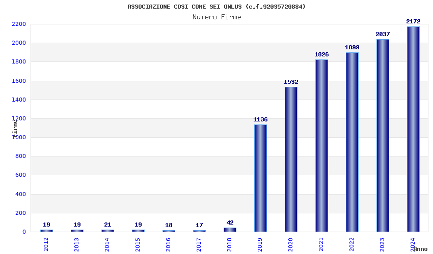 | Anno | Firme | Importi | Media | Naz. | Reg. | Prov. | Comu. |