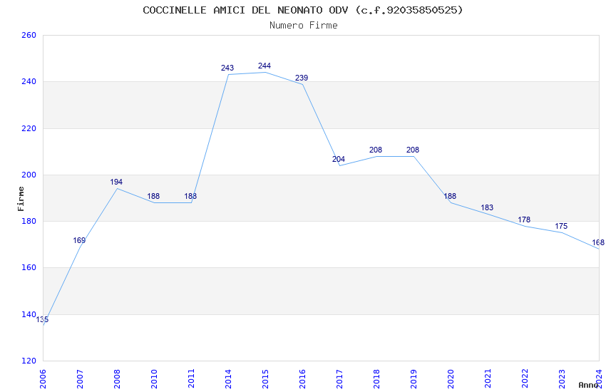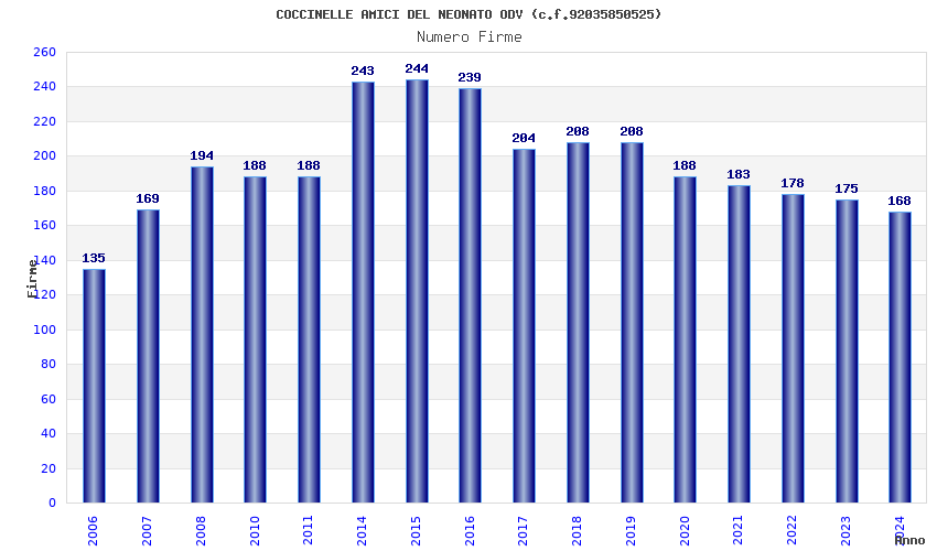 | Anno | Firme | Importi | Media | Naz. | Reg. | Prov. | Comu. |