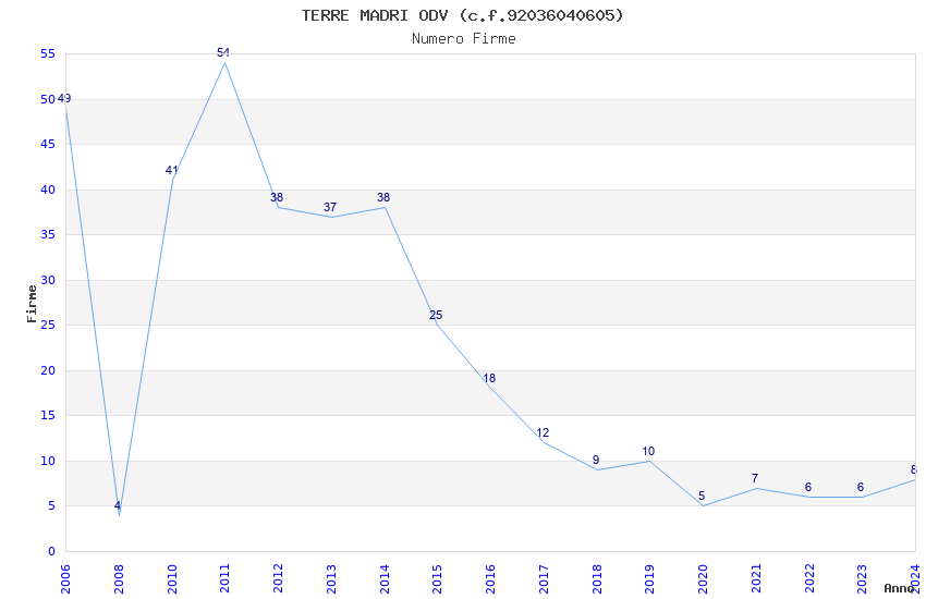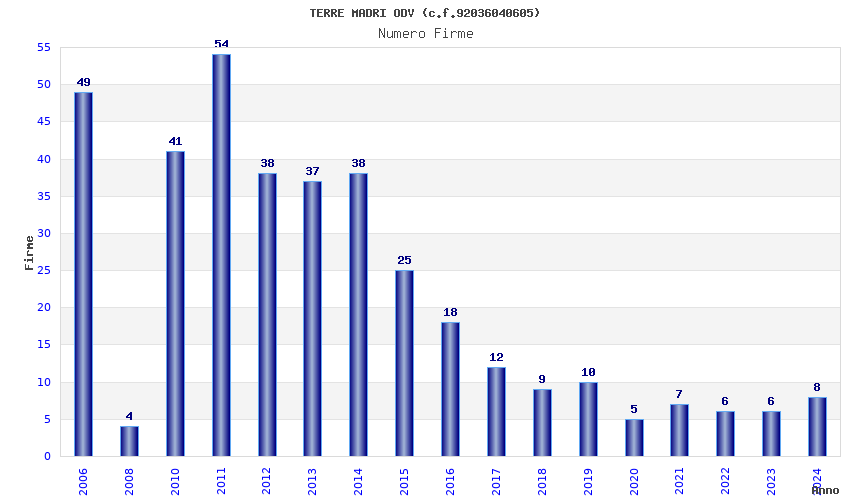 | Anno | Firme | Importi | Media | Naz. | Reg. | Prov. | Comu. |