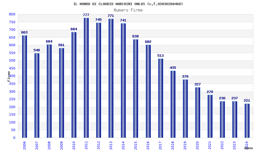 | Anno | Firme | Importi | Media | Naz. | Reg. | Prov. | Comu. |