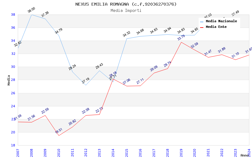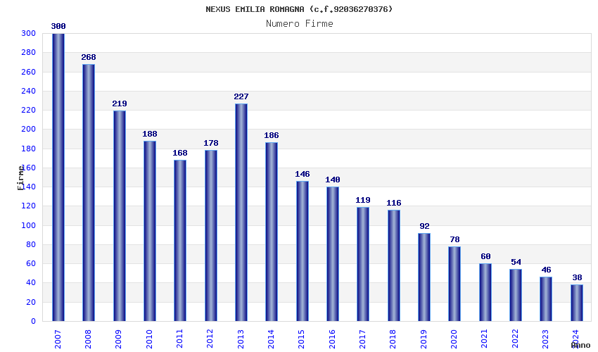 | Anno | Firme | Importi | Media | Naz. | Reg. | Prov. | Comu. |