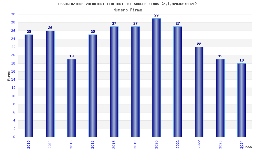 | Anno | Firme | Importi | Media | Naz. | Reg. | Prov. | Comu. |