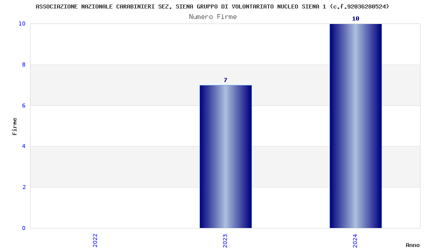 | Anno | Firme | Importi | Media | Naz. | Reg. | Prov. | Comu. |