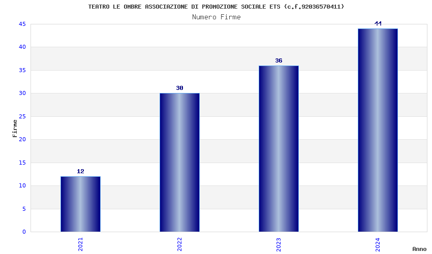 | Anno | Firme | Importi | Media | Naz. | Reg. | Prov. | Comu. |