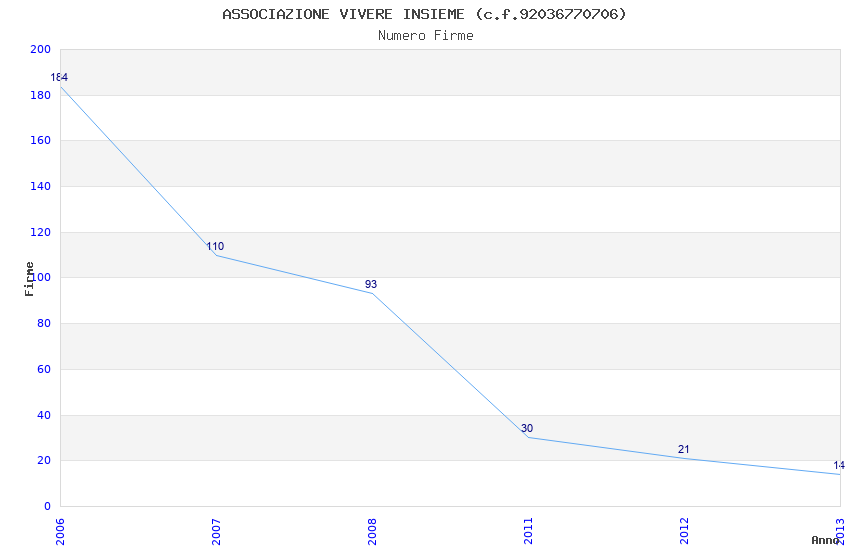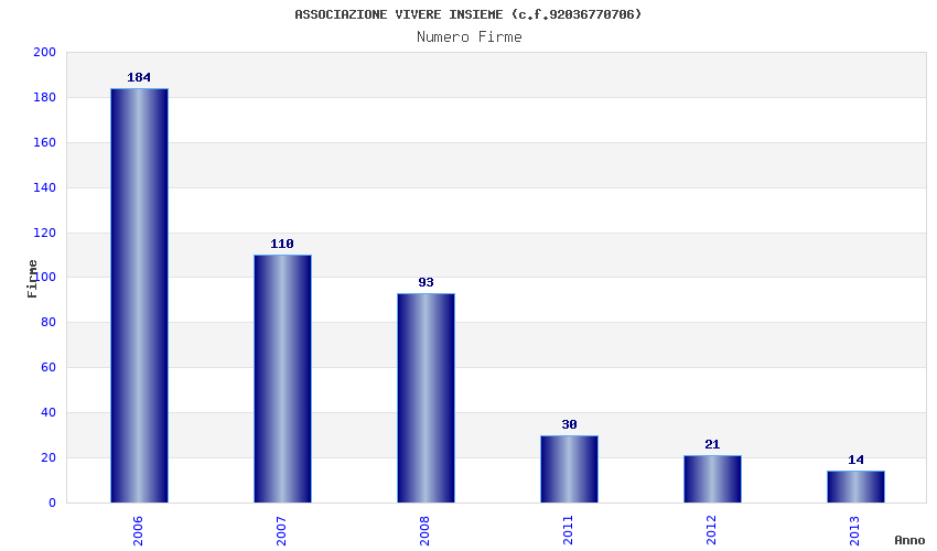 | Anno | Firme | Importi | Media | Naz. | Reg. | Prov. | Comu. |