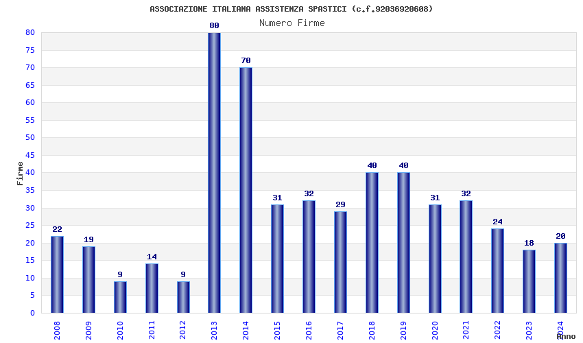 | Anno | Firme | Importi | Media | Naz. | Reg. | Prov. | Comu. |