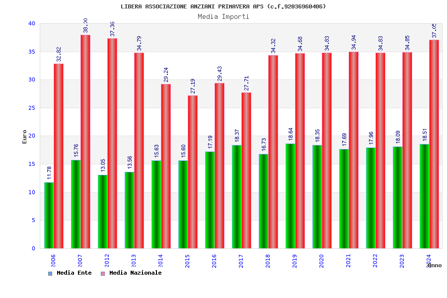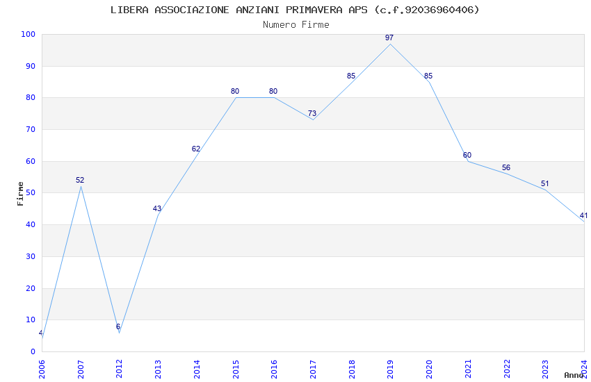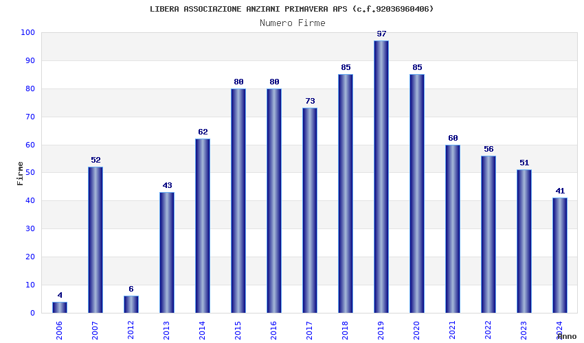 | Anno | Firme | Importi | Media | Naz. | Reg. | Prov. | Comu. |