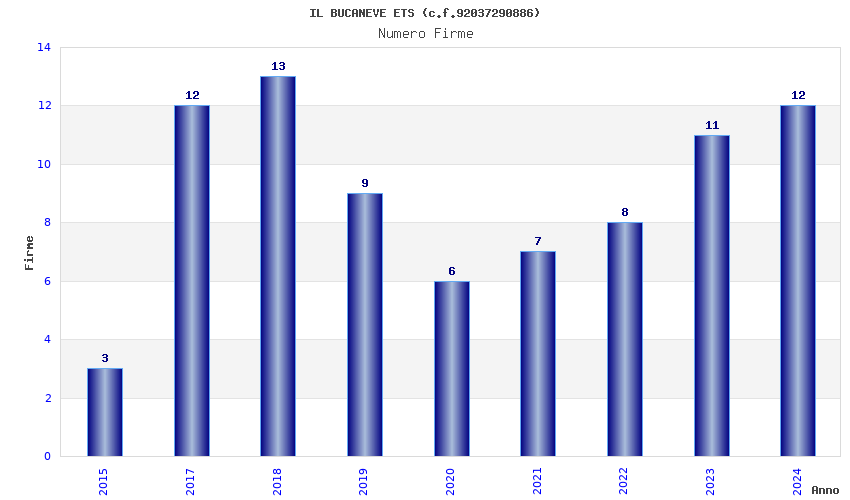 | Anno | Firme | Importi | Media | Naz. | Reg. | Prov. | Comu. |