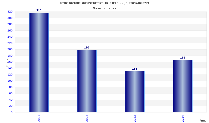 | Anno | Firme | Importi | Media | Naz. | Reg. | Prov. | Comu. |