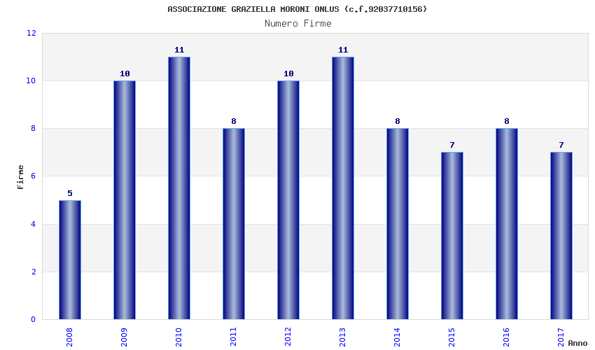 | Anno | Firme | Importi | Media | Naz. | Reg. | Prov. | Comu. |